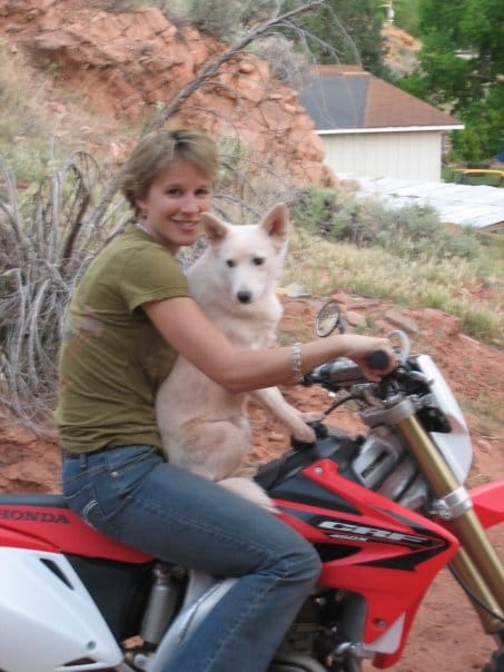 Moab locals may remember Moxie, my little white dog riding on the tank of my dirt bike, as I buzzed around town almost two decades ago when Moab’s traffic was slower and friendlier.